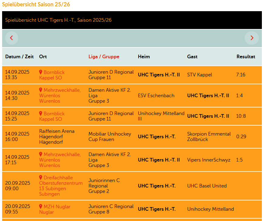 Wer spielt am Wochenende wann und wo? Was gab es für Resultate?? Mit der Spielübersicht bist Du auf dem Laufenden.